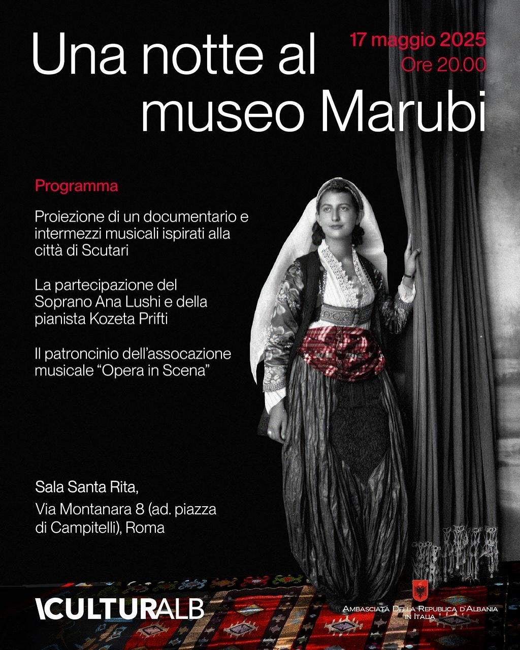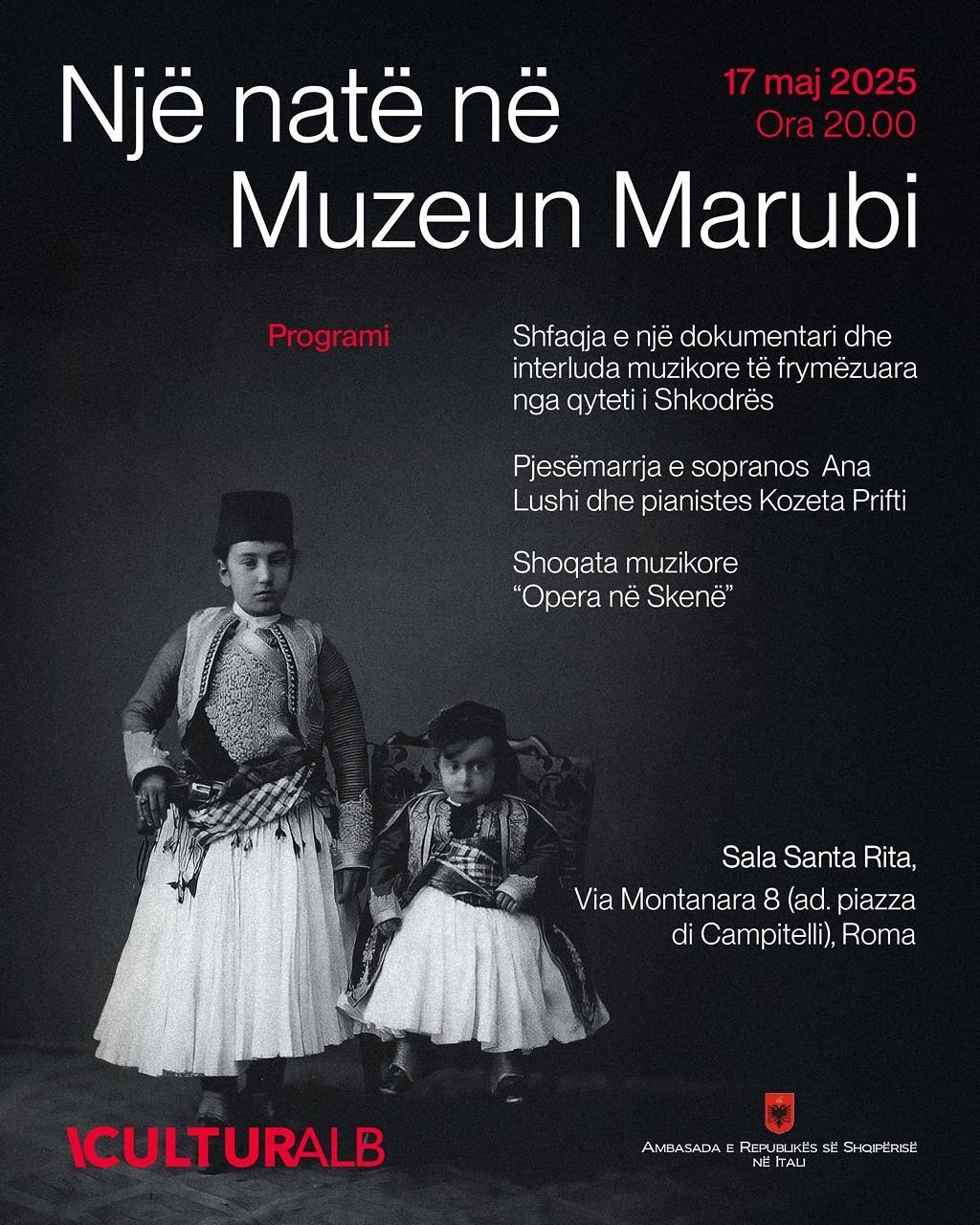 Për herë të parë, vepra nga Muzeu Marubi do të ekspozohen në një nga netët më magjike të Romës! Në kuadër të Notte dei Musei 2025, më 17 maj, muzetë e kryeqytetit italian hapin dyert deri në orët e para të mëngjesit, dhe Marubi bëhet pjesë e kësaj feste ndërkombëtare të artit, historisë dhe fotografisë.