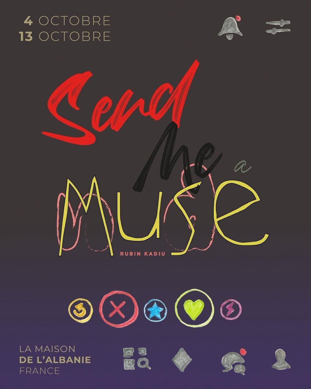 Rubin Kadiu, artist vizual që ndërthur mediume të ndryshme mes fotografisë dhe grafikës, sjell në Paris ekspozitën e tij më të fundit “Send Me a Muse”, që hapet më 4–13 tetor 2025 në La Maison de l’Albanie, Francë. Në këtë ekspozitë, artisti reflekton mbi kufirin mes marrëdhënieve virtuale dhe atyre reale. Çdo punë është një ftesë për të menduar mbi mënyrën se si ndërtojmë lidhje, ndajmë emocione dhe krijojmë identitet përmes botës digjitale. Ekspozita është kuruar nga Ena Bulku, e cila përmes vizionit të saj sjell në vëmendje procesin e veçantë krijues të artistit, ku rastësia shndërrohet në një hapësirë për reflektim estetik dhe eksplorim të thellë personal.