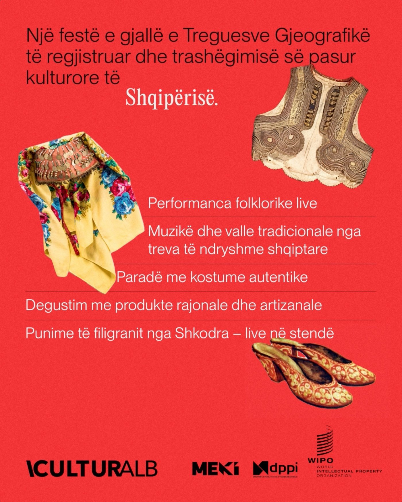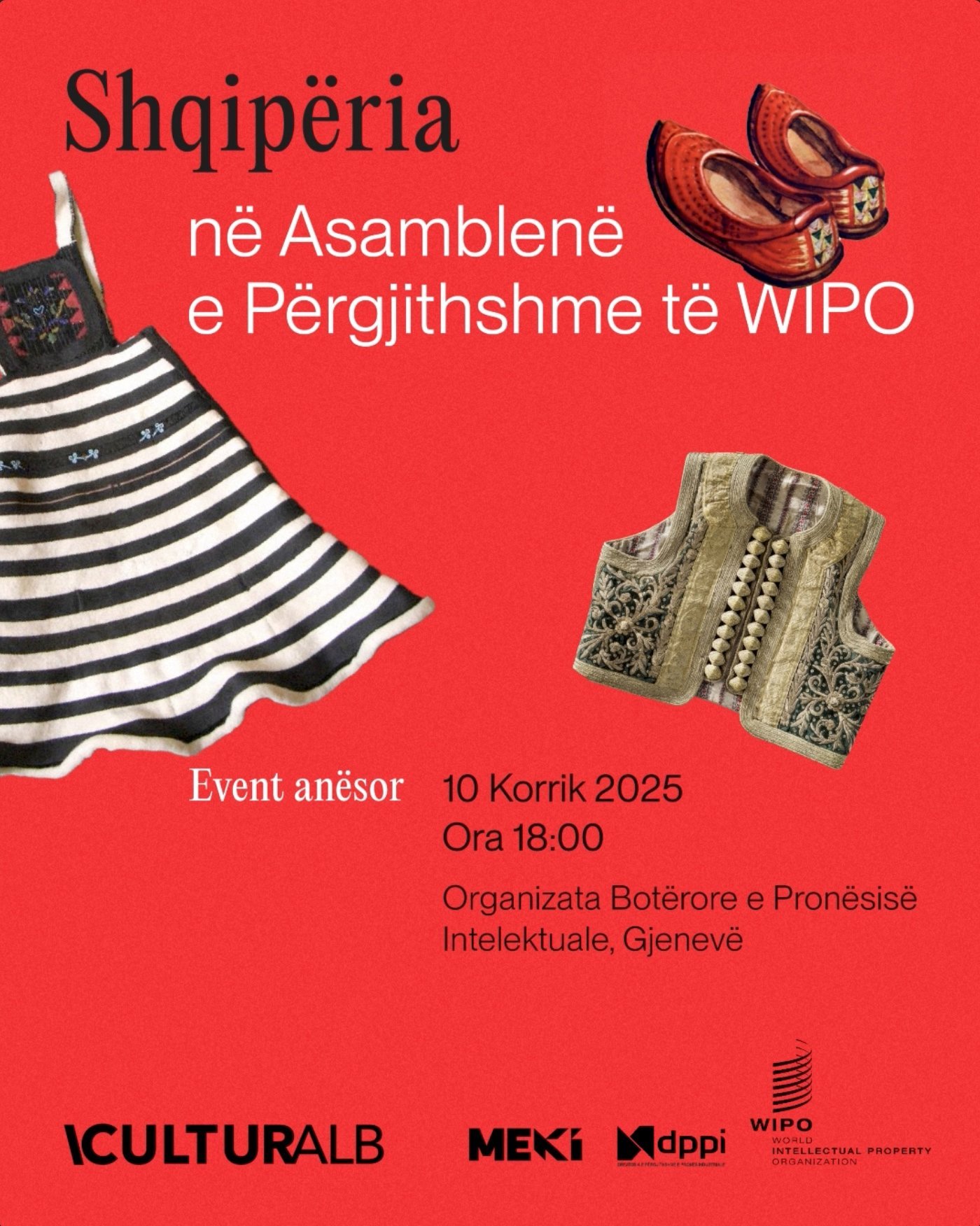 Shqipëria do të organizojë më 10 korrik 2025 një aktivitet të posaçëm në selinë e Organizatës Botërore të Pronësisë Intelektuale (WIPO) në Gjenevë, si pjesë e Asamblesë së Përgjithshme ku pritet të marrin pjesë mbi 600 delegatë nga e gjithë bota. WIPO, një agjenci e Kombeve të Bashkuara, udhëheq zhvillimin e një ekosistemi global të balancuar të pronësisë intelektuale që promovon inovacionin, kreativitetin dhe qëndrueshmërinë. Me 193 shtete anëtare, WIPO mbështet kulturat dhe ekonomitë nëpërmjet mbrojtjes së të drejtave krijuese dhe industriale. Ngjarja e Shqipërisë do të sjellë një program artistik me valle tradicionale dhe muzikë nga trevat shqiptare, si dhe një prezantim të veçantë mbi treguesit gjeografikë dhe shprehjet kulturore tradicionale. Kjo është një mundësi e veçantë për të treguar para botës identitetin dhe pasuritë unike kulturore të vendit tonë.