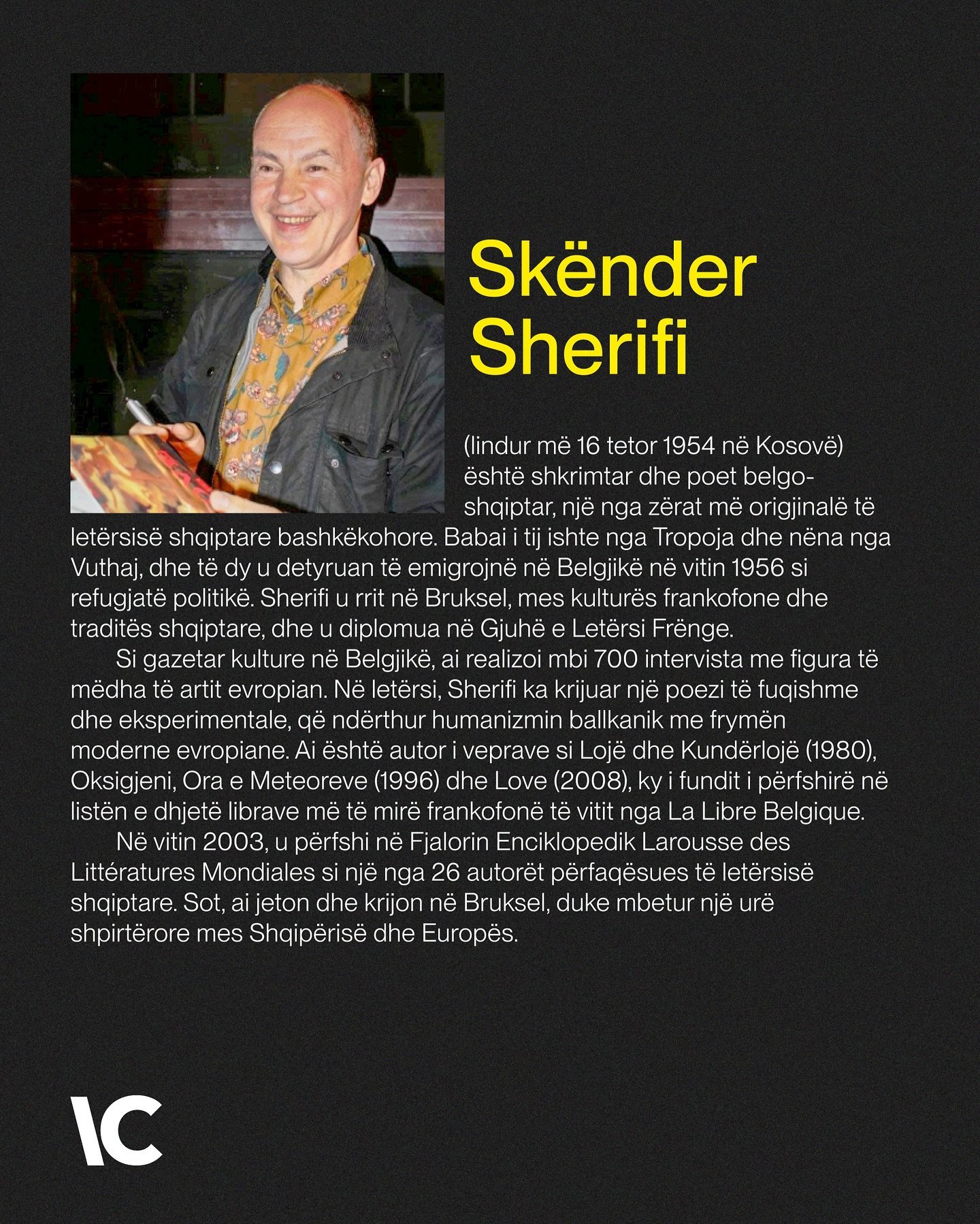 Skënder Sherifi, autor, eseist, gazetar dhe studiues frankofon, ka ruajtur ndër vite një lidhje të thellë me Shqipërinë. Me një karrierë të spikatur në letërsi, media dhe mendim kulturor, Sherifi ka ndërtuar ura mes kulturave, duke promovuar identitetin dhe historinë shqiptare në hapësirën frankofone dhe më gjerë. Në Bruksel, më 17 tetor 2025, do të mbahet një event jubilar në nder të tij, një homazh zyrtar që shënon për herë të parë vlerësimin e një intelektuali shqiptar nga institucionet belge. Ky nderim, përfaqëson mirënjohjen ndaj kontributit të tij të jashtëzakonshëm në kulturës në nivel ndërkombëtar.